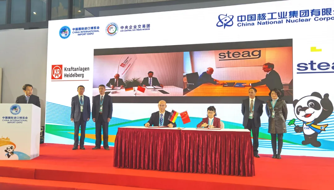 11月6日,第三届中国国际进口博览会期间,在中核集团党组成员、副总经理曹述栋的见证下,集团公司相关单位分别与德国、法国相关企业签署采购合同,合同总金额超7亿元,进一步深化了对外开放合作成果,共享核能发展红利。