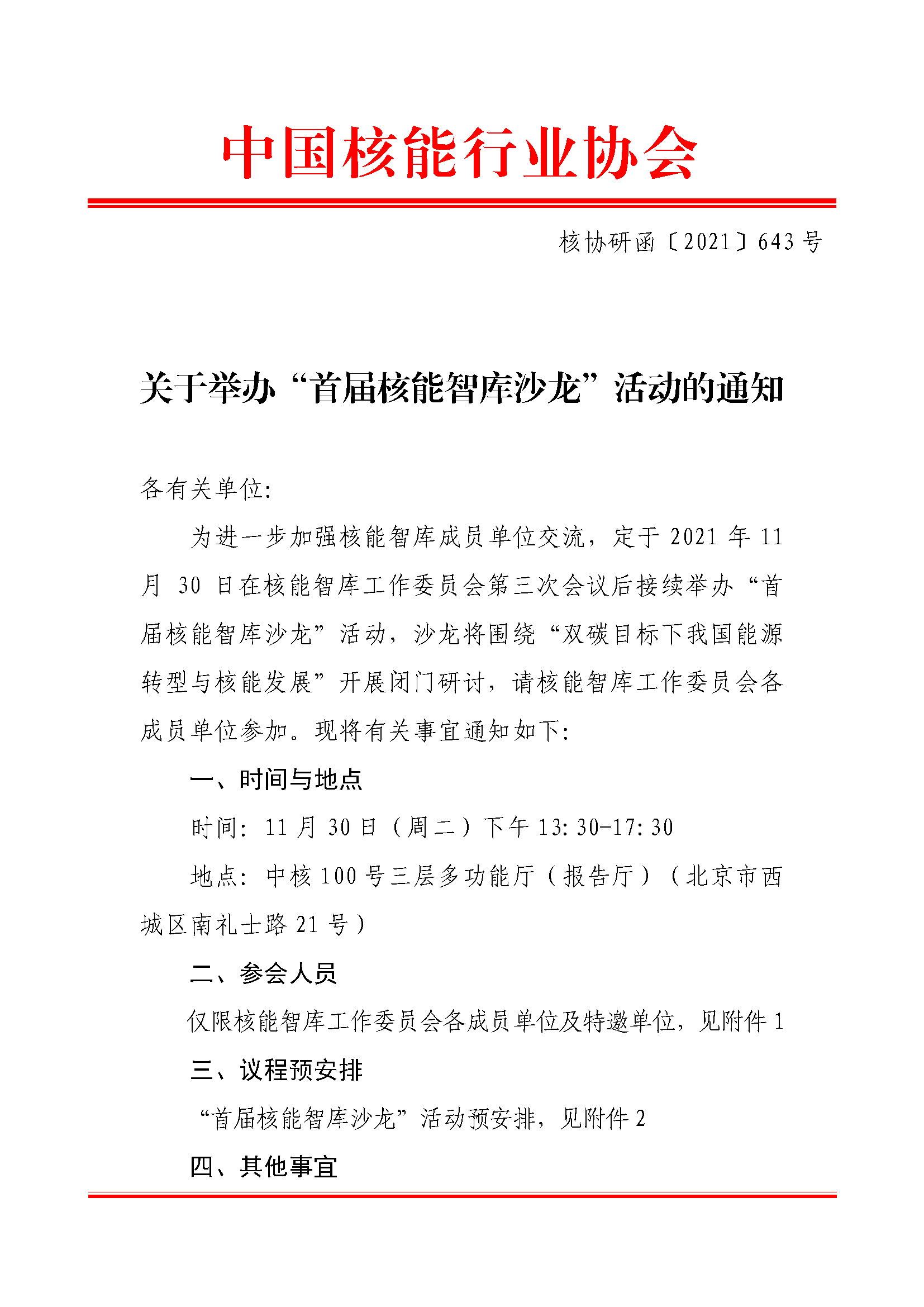 关于举办“首届核能智库沙龙”活动的通知