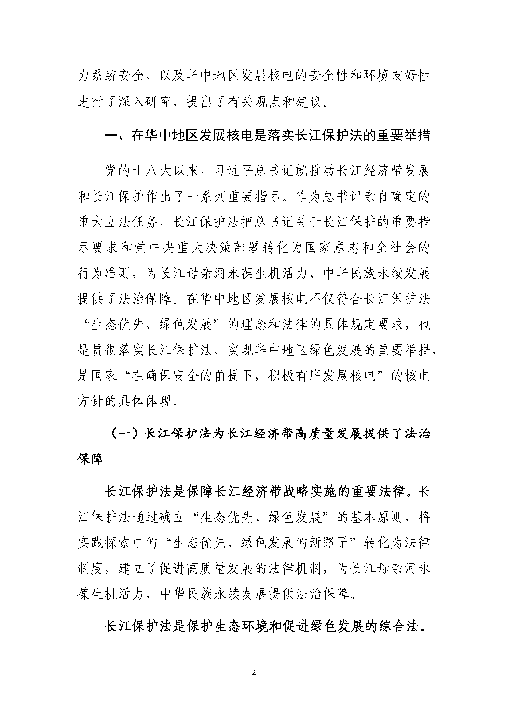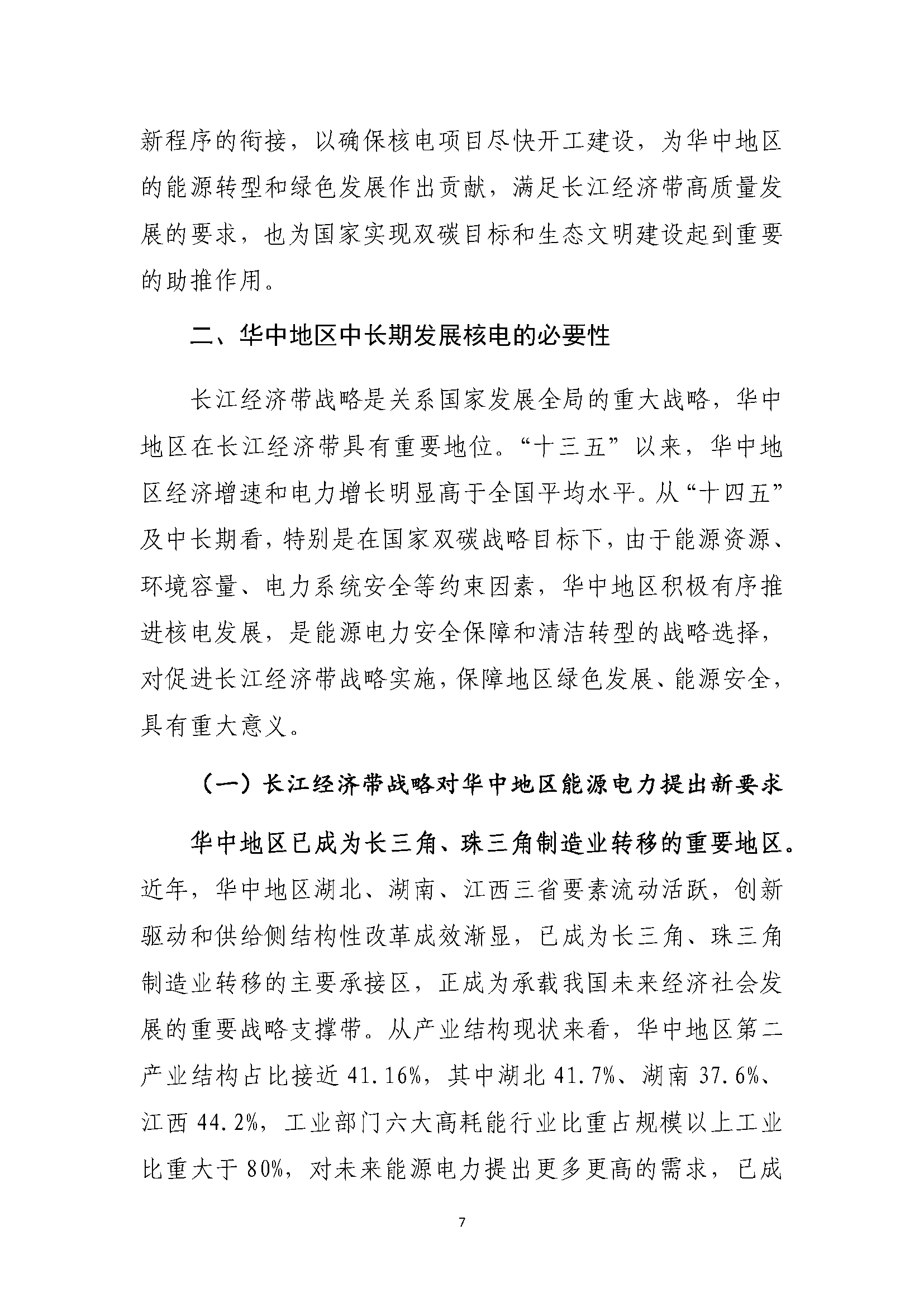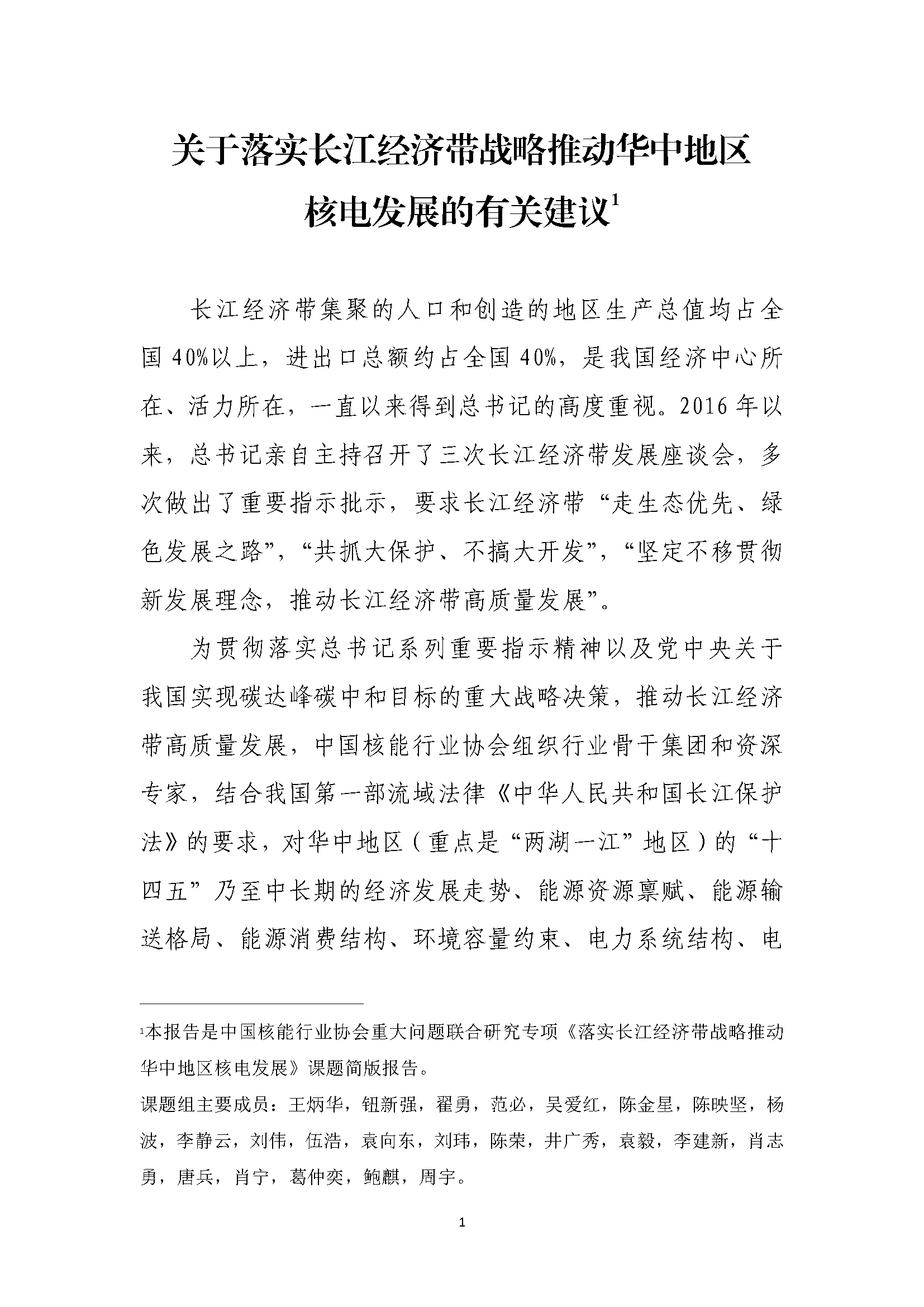 关于落实长江经济带战略推动华中地区核电发展的有关建议