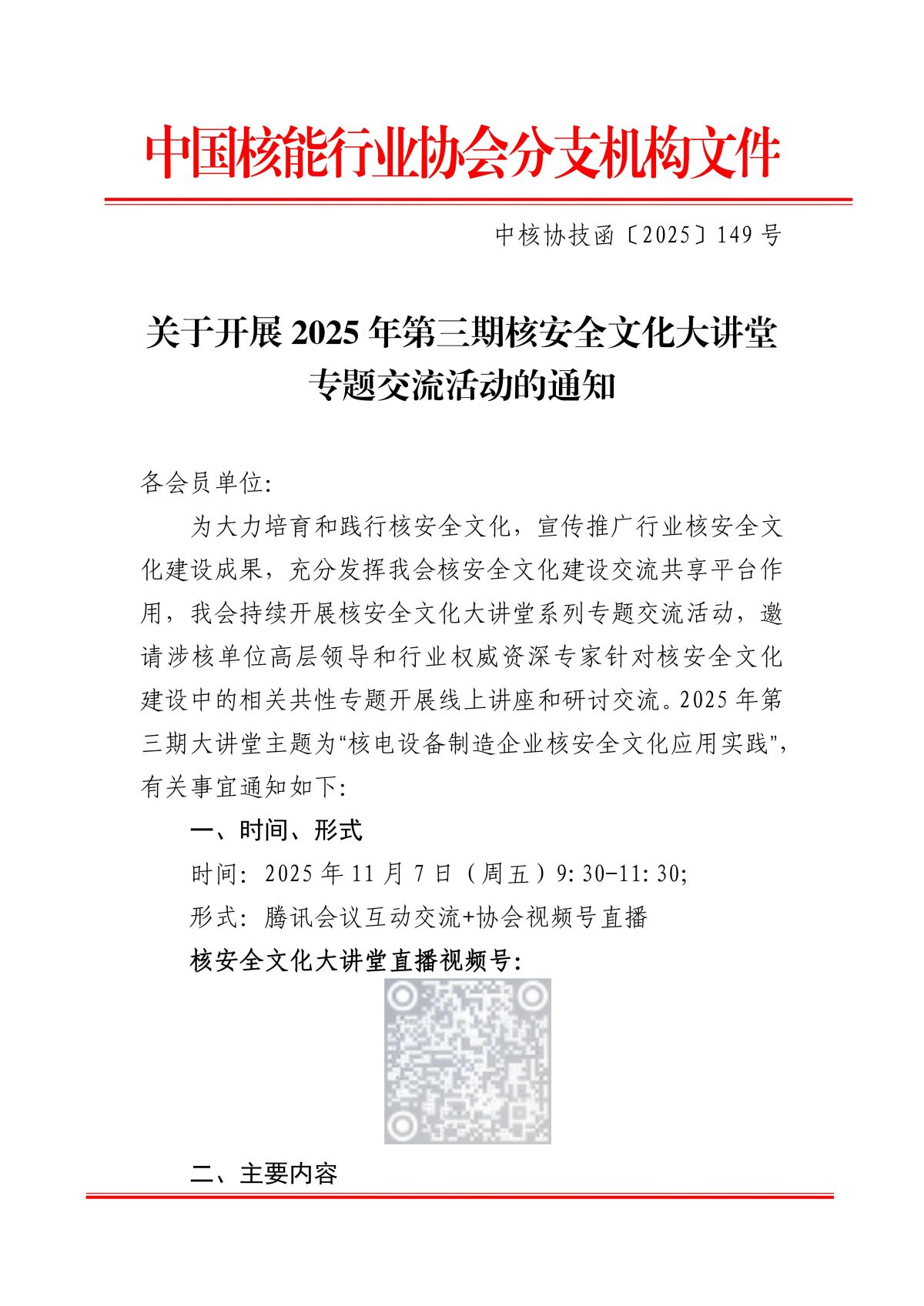 关于开展2025年第三期核安全文化大讲堂专题交流活动的通知
