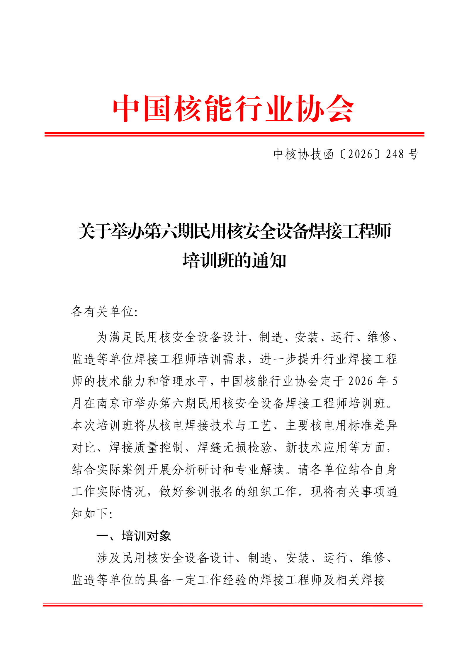 关于举办第六期民用核安全设备焊接工程师培训班的通知.pdf