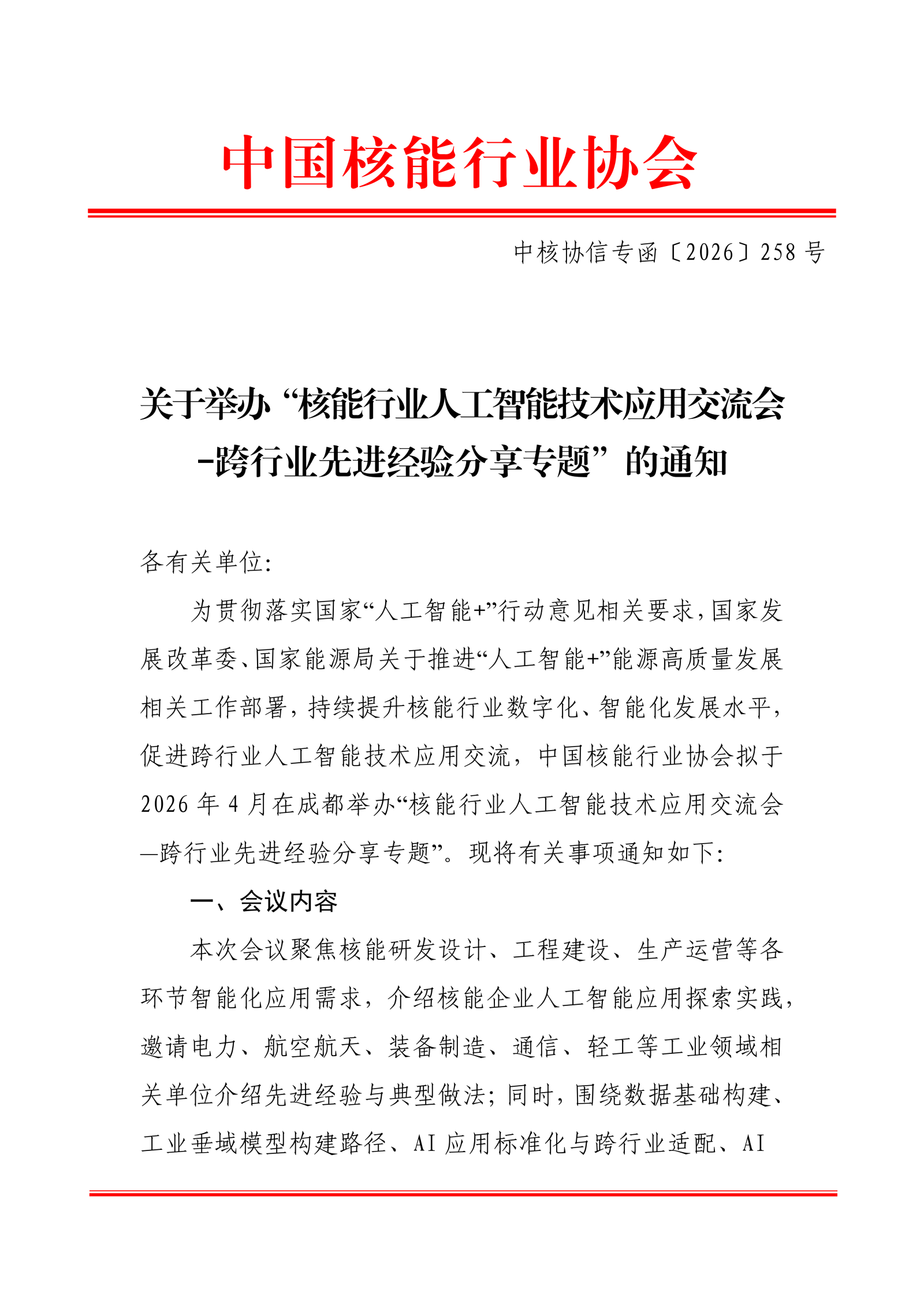 关于举办“核能行业人工智能技术应用交流会-跨行业先进经验分享专题”的通知.pdf
