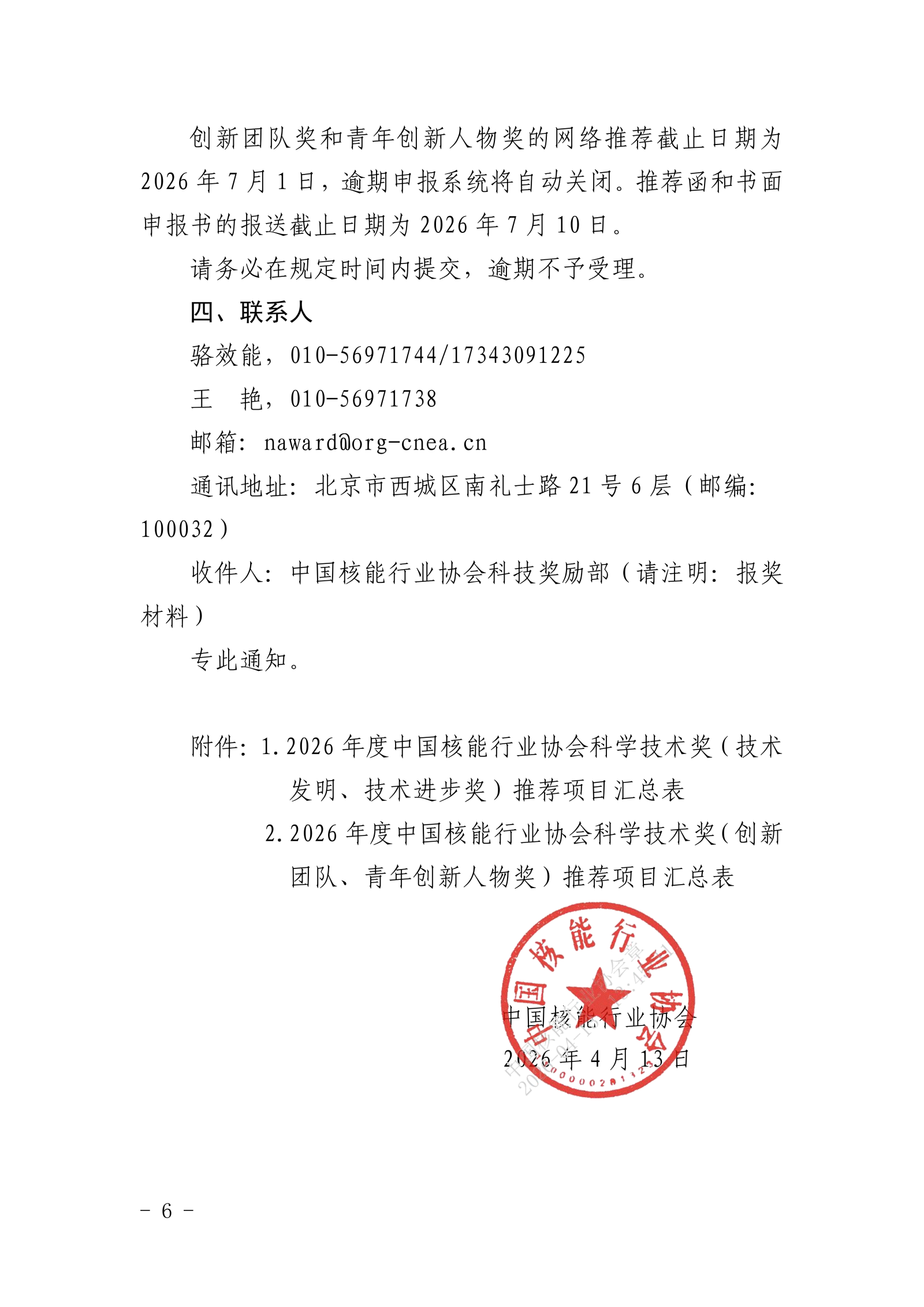 关于开展2026年度中国核能行业协会科学技术奖推荐工作的通知.pdf