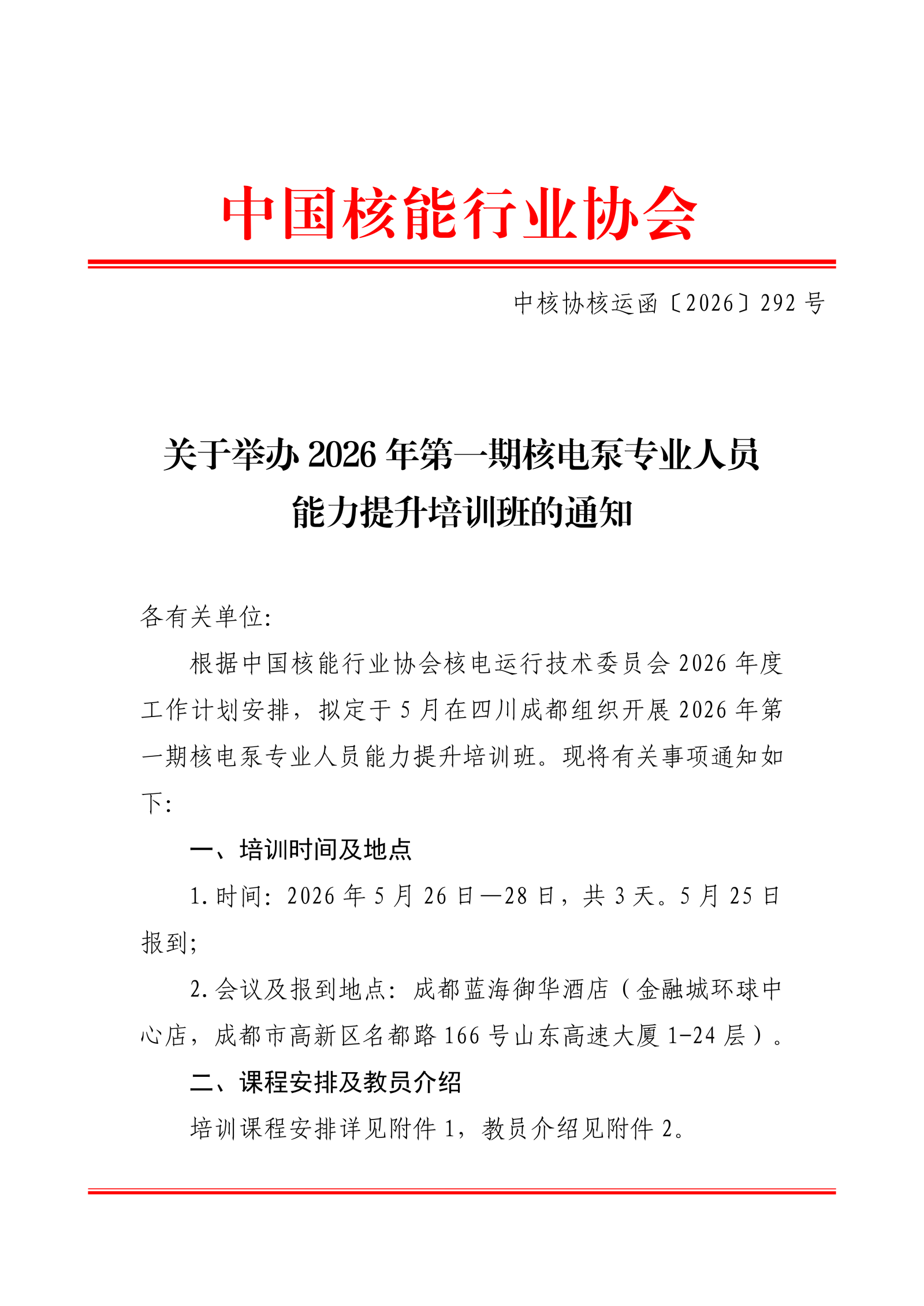 关于举办2026年第一期核电泵专业人员能力提升培训班的通知