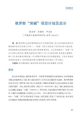 发展战略,即通过“突破”(PRORYV)项目计划,发展快堆封闭燃料循环,到 2050