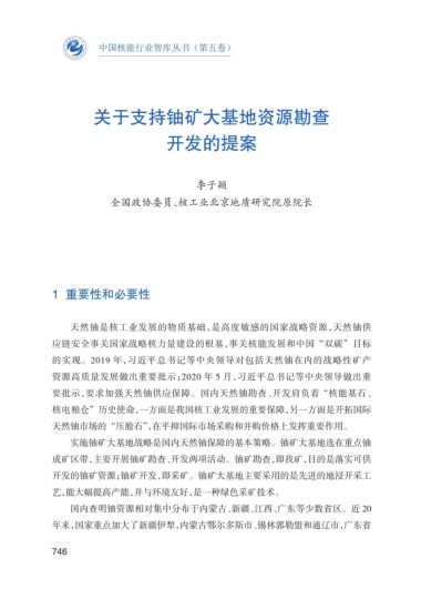 要批示,要求加强天然铀供应保障。国内天然铀勘查、开发肩负着“核能基石、
