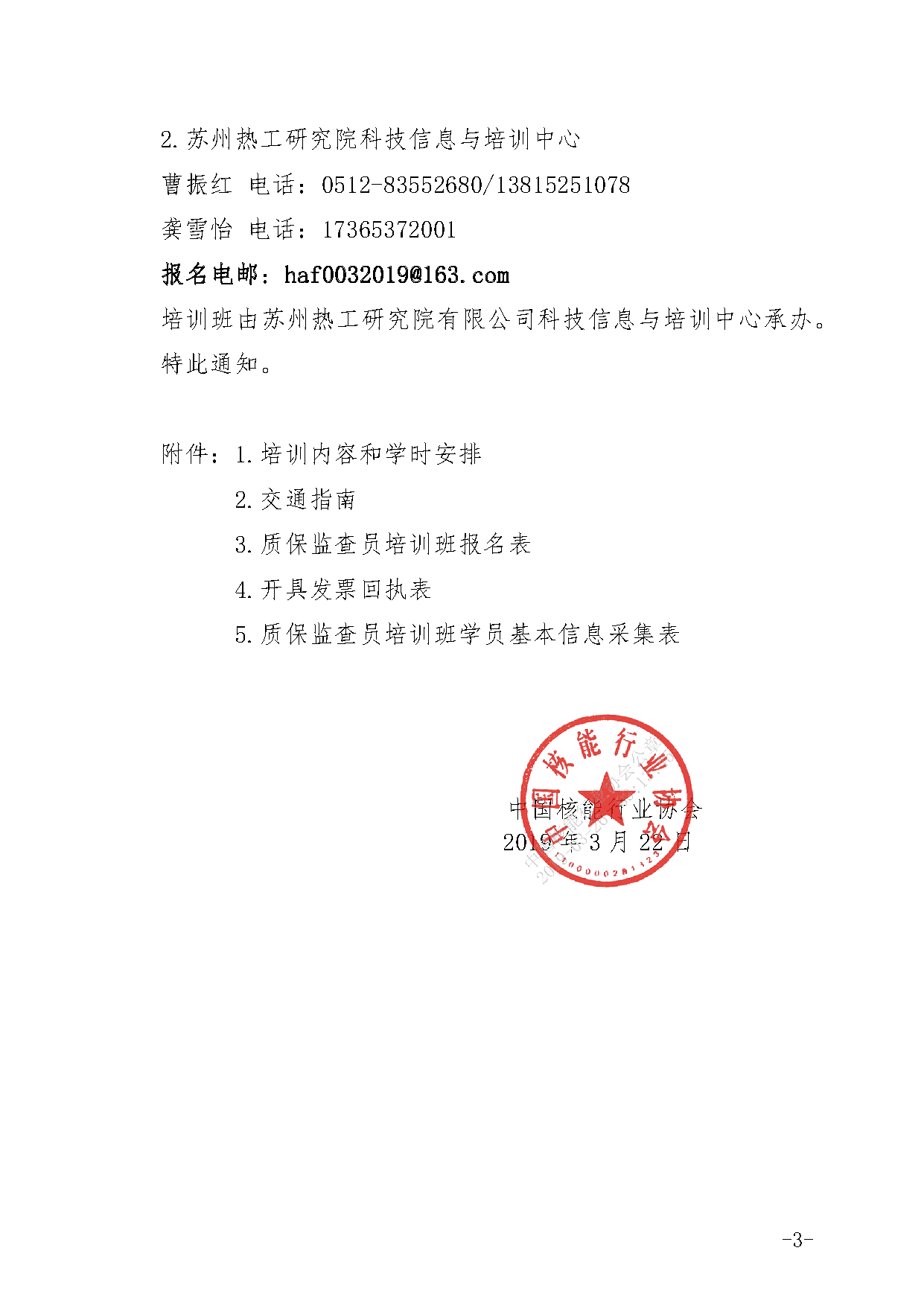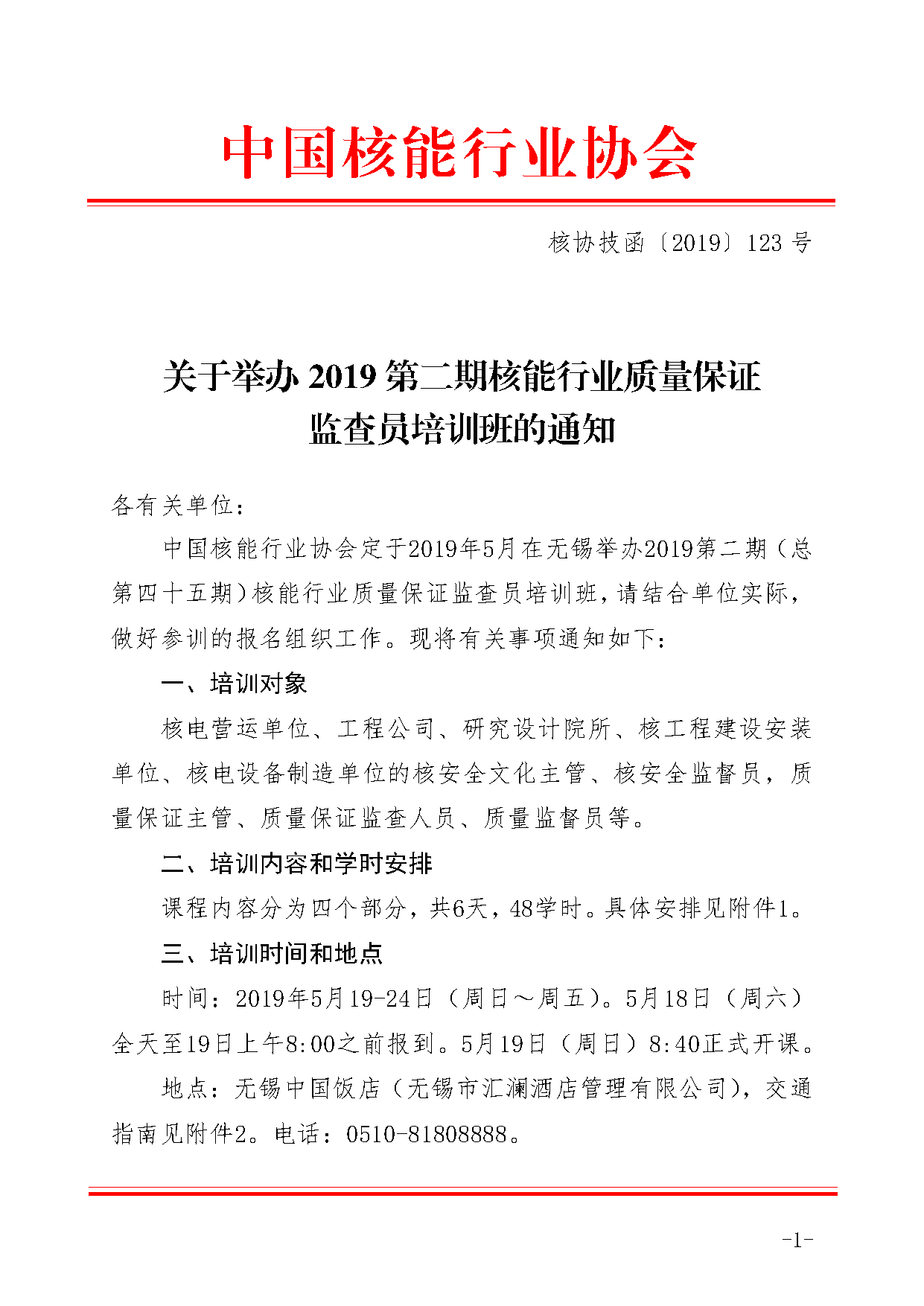 关于举办2019第二期核能行业质量保证监查员培训班的通知.pdf