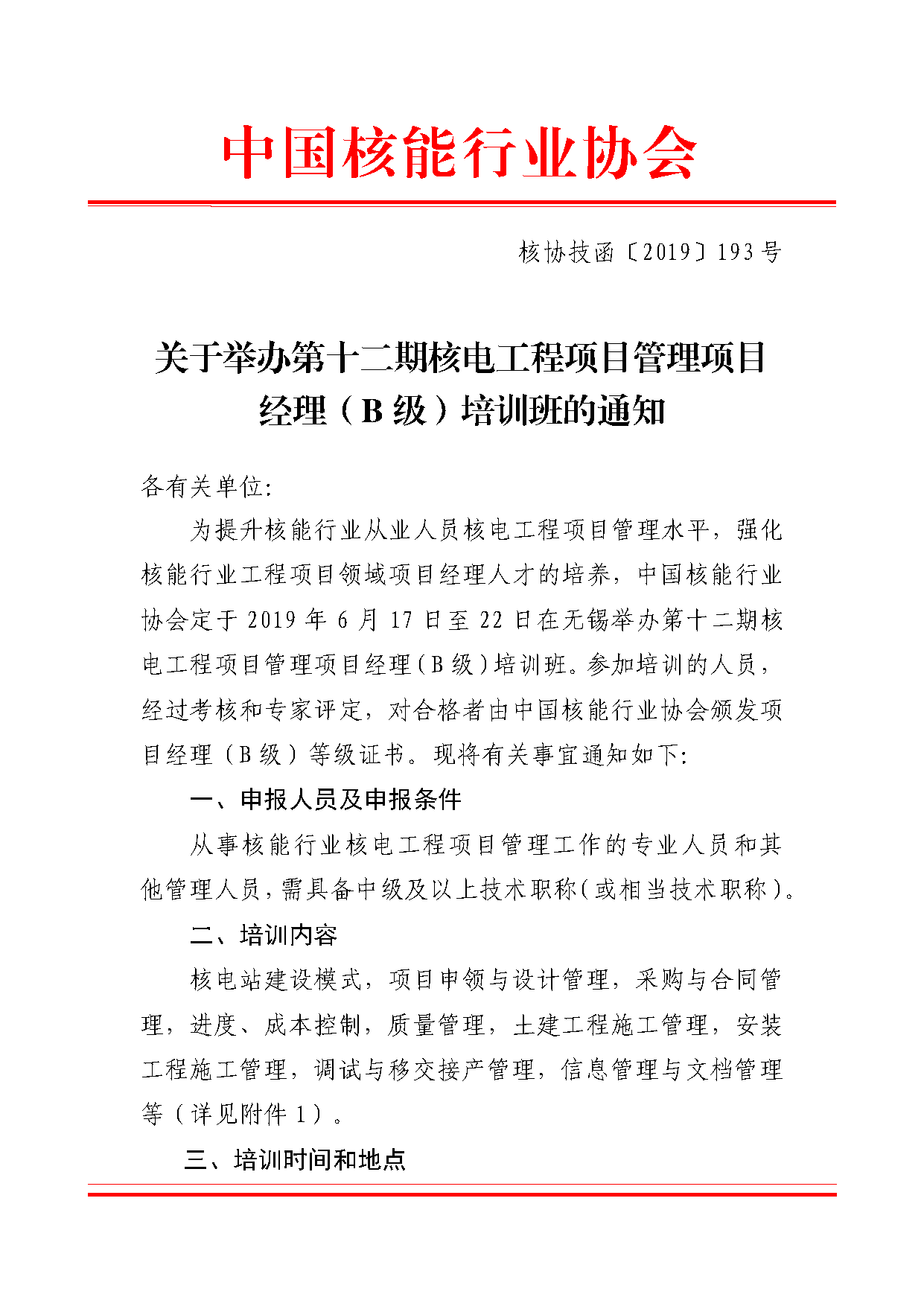 关于举办第十二期核电工程项目管理项目经理(B级)培训班的通知.pdf