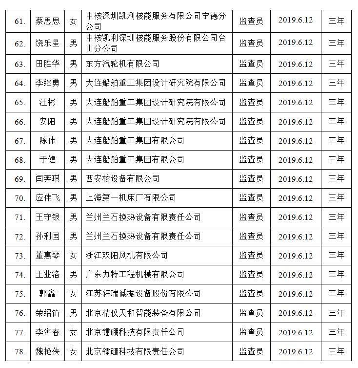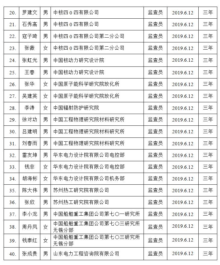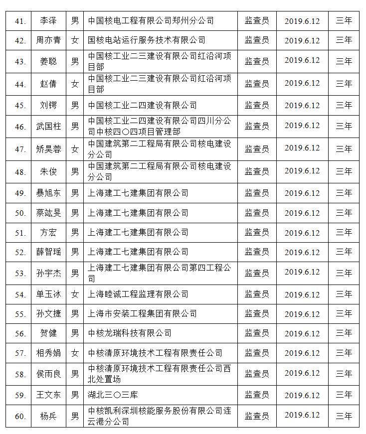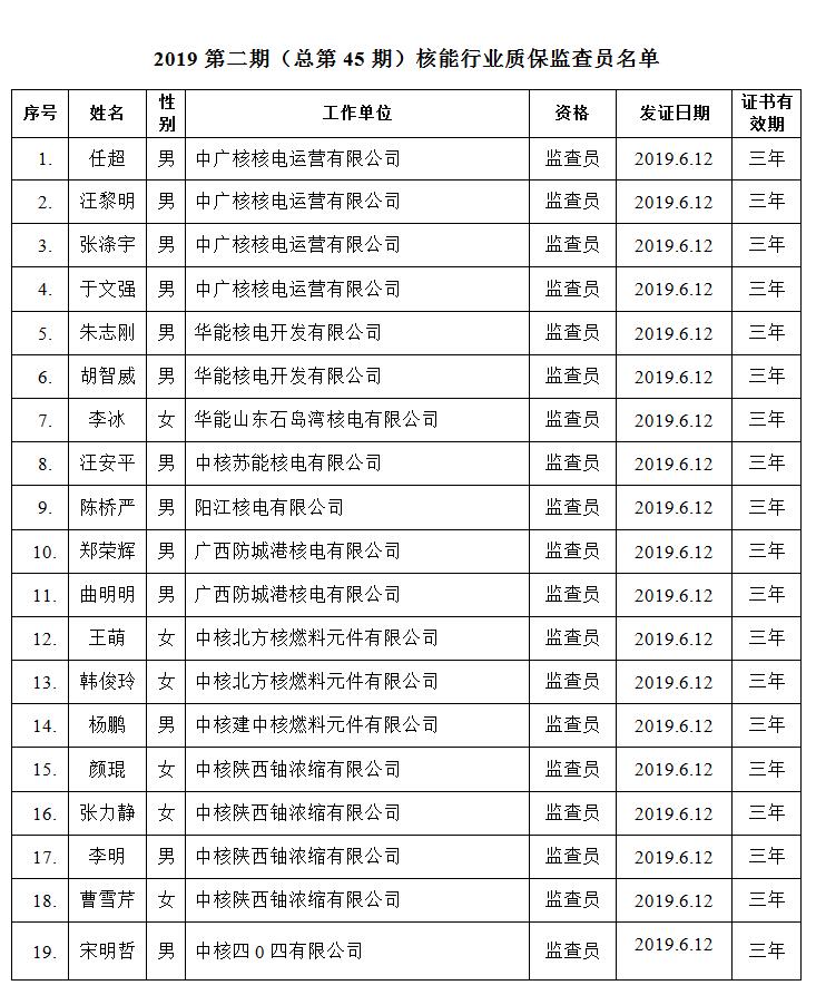 2019第二期(总第45期)核能行业质保监查员名单