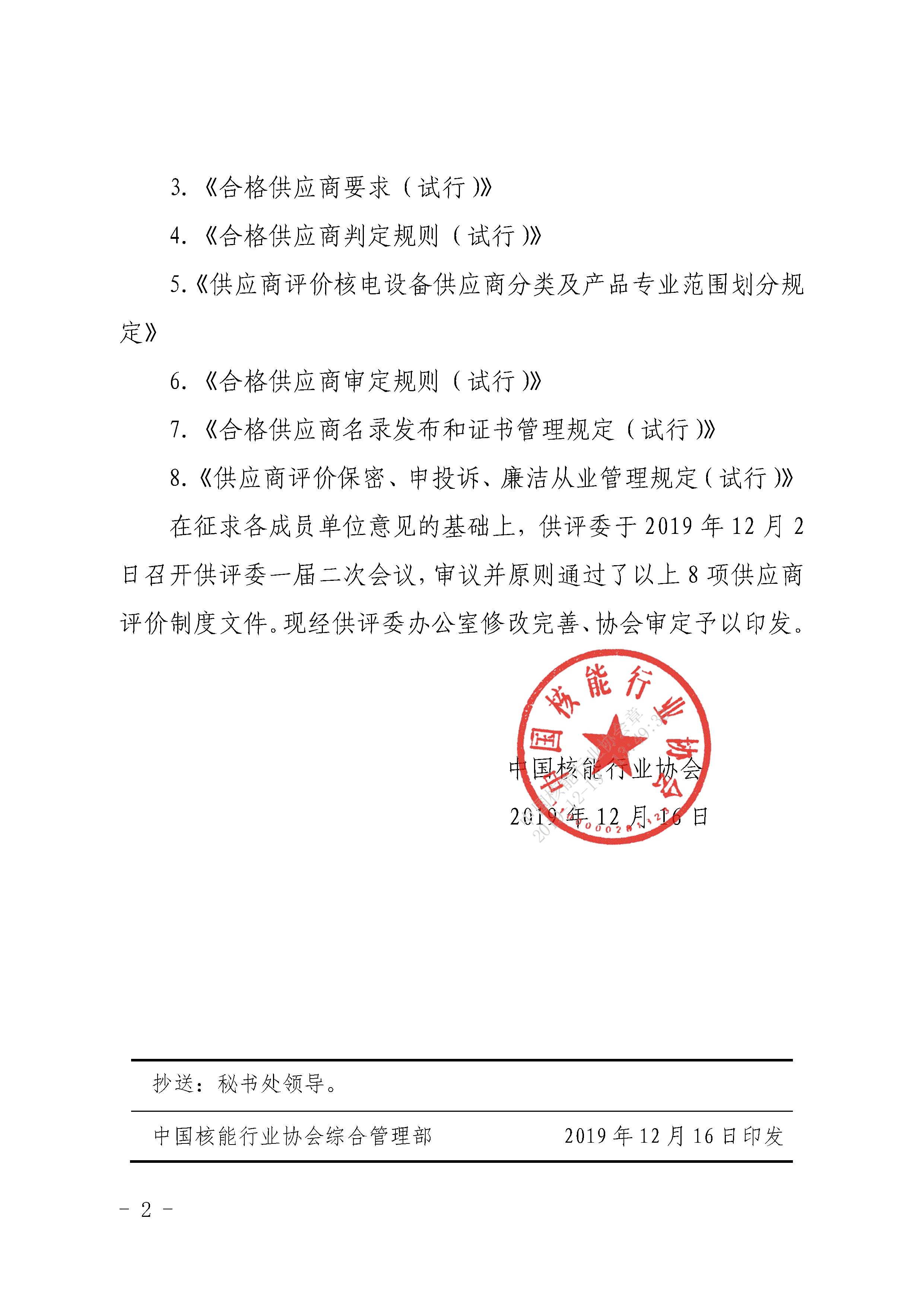 关于印发《供应商评价评审员专家资格要求》等8项中国核能行业协会供应商评价制度文件的通知12.19.pdf