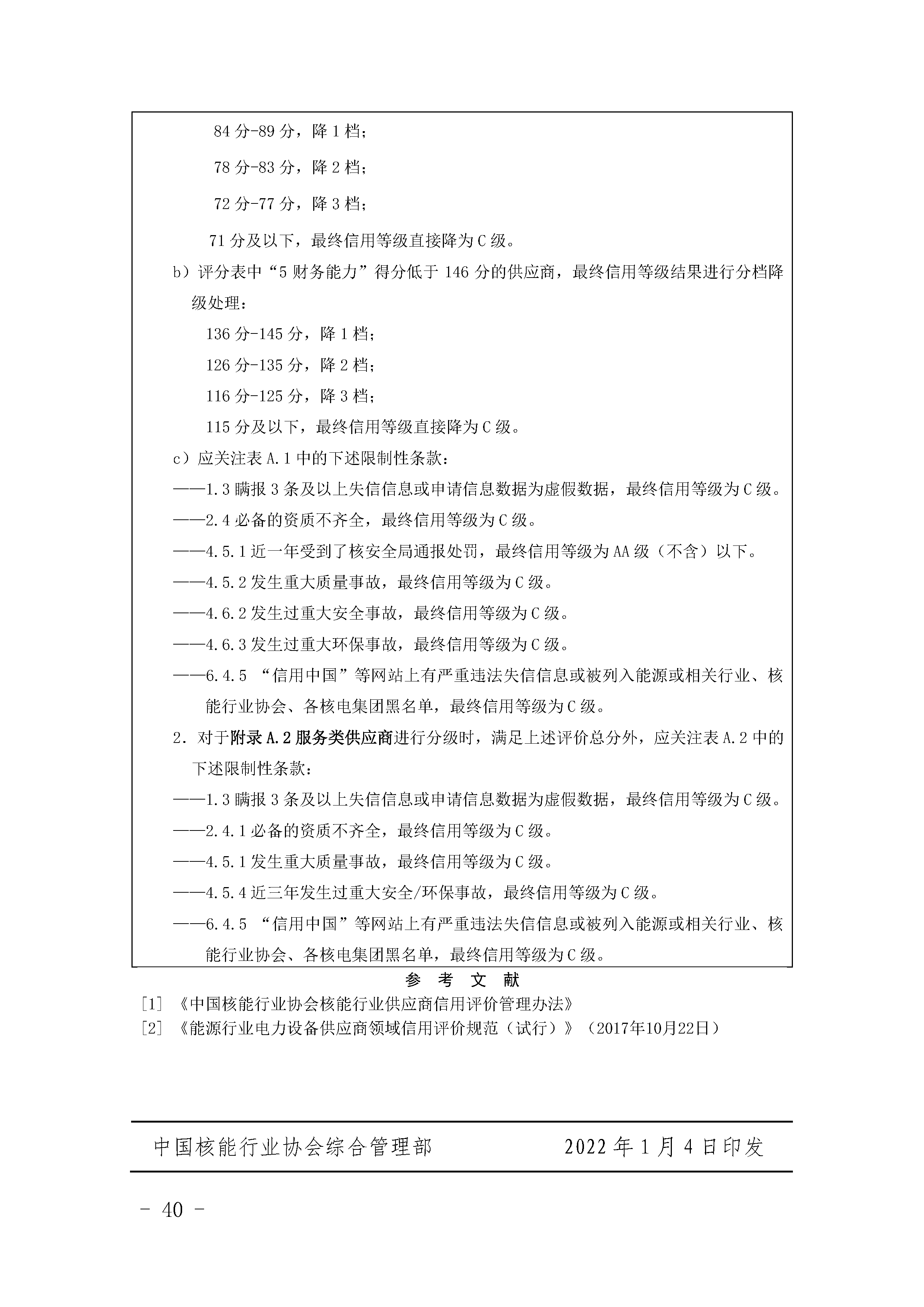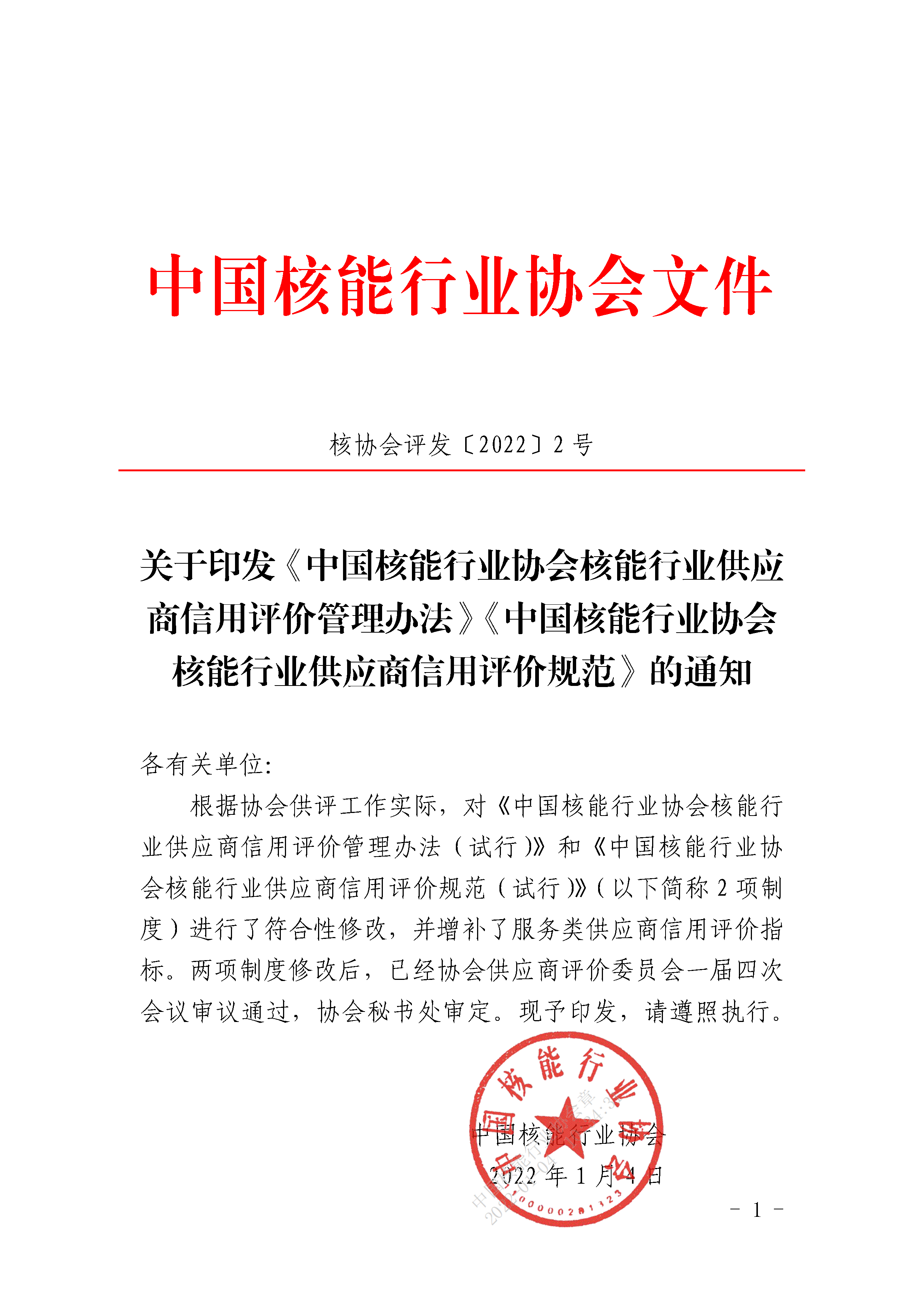 关于印发《中国核能行业协会核能行业供应商信用评价管理办法》《中国核能行业协会核能行业供应商信用评价规范》的通知