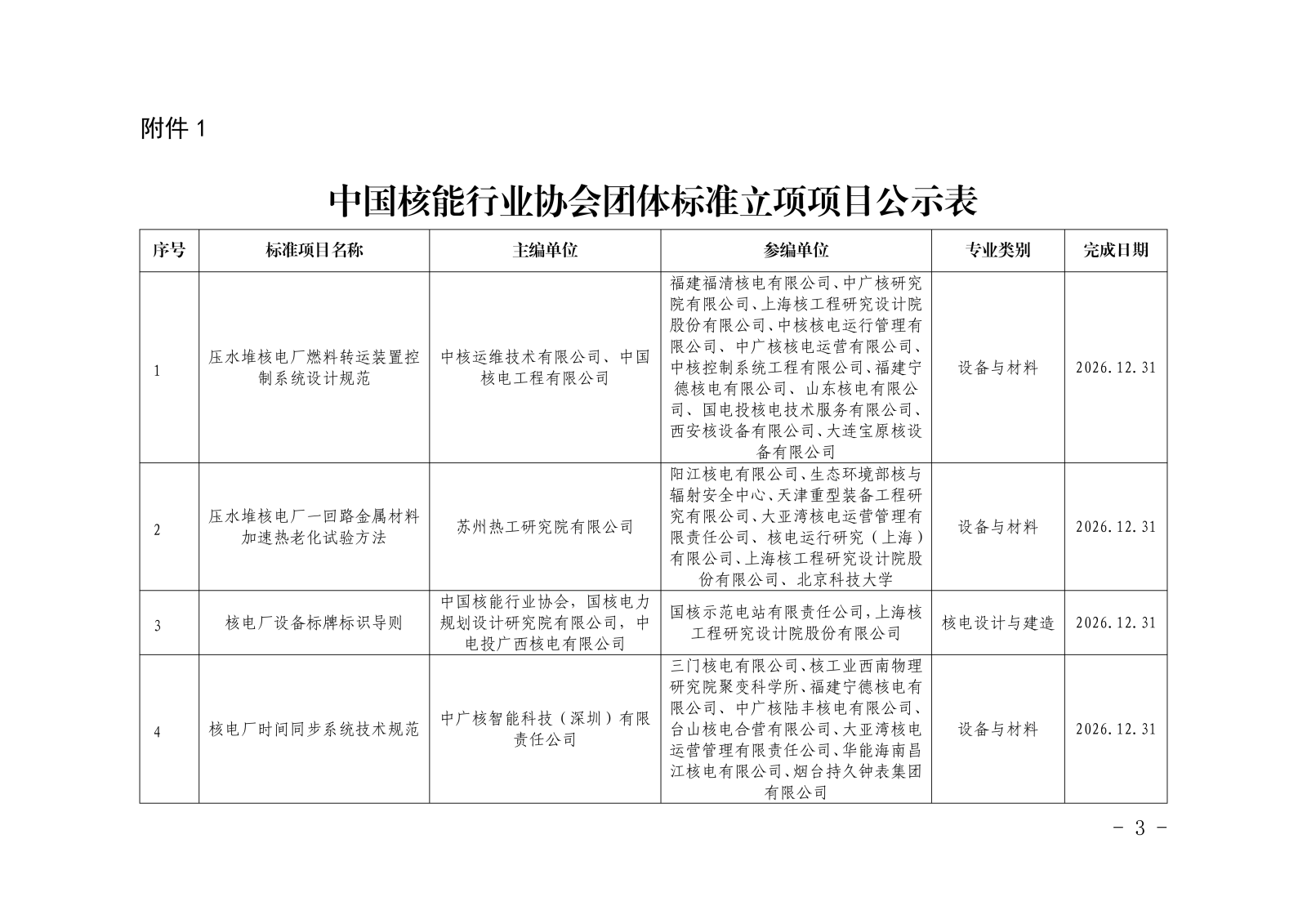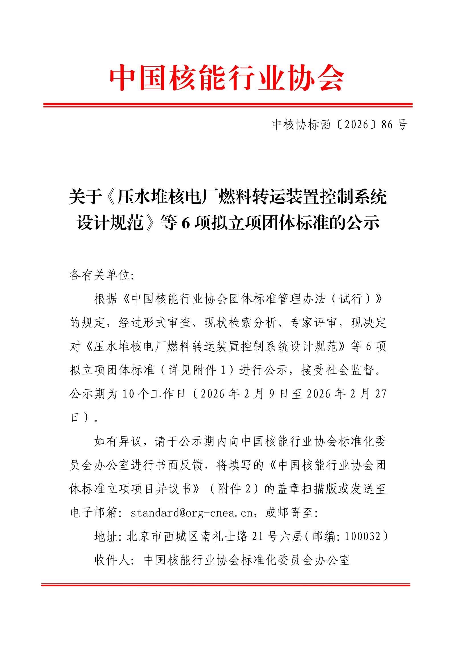 关于《压水堆核电厂燃料转运装置控制系统设计规范》等6项拟立项团体标准的公示