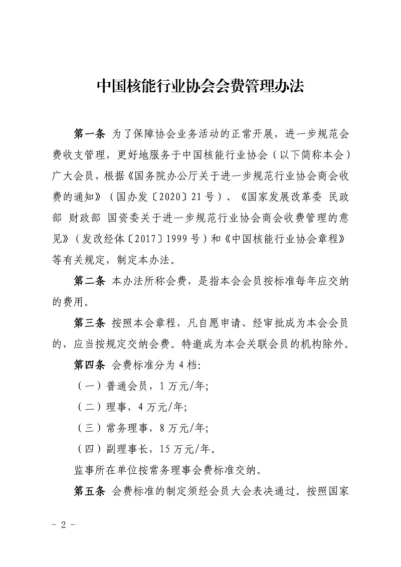 中国核能行业协会会费管理办法
