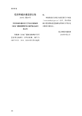 特..载 住房和城乡建设部公告 施。 2018年 第209号 本标准在住房城乡建设部门户网站 (www.mohurd.gov.cn)公开,并由住房 住房和城乡建设部关于发布国家标准 城乡建设部标准定额研究所组织中国计划 《核电厂建构筑物维护及可靠性鉴定标准》 出版社出版发行。 的公告 住房和城乡建设部 现批准《核电厂建构筑物维护及可 2018年9月11日 靠性鉴定标准》为国家标准,编号为 GB/T 51323—2018,自2019年3月1日起实 36